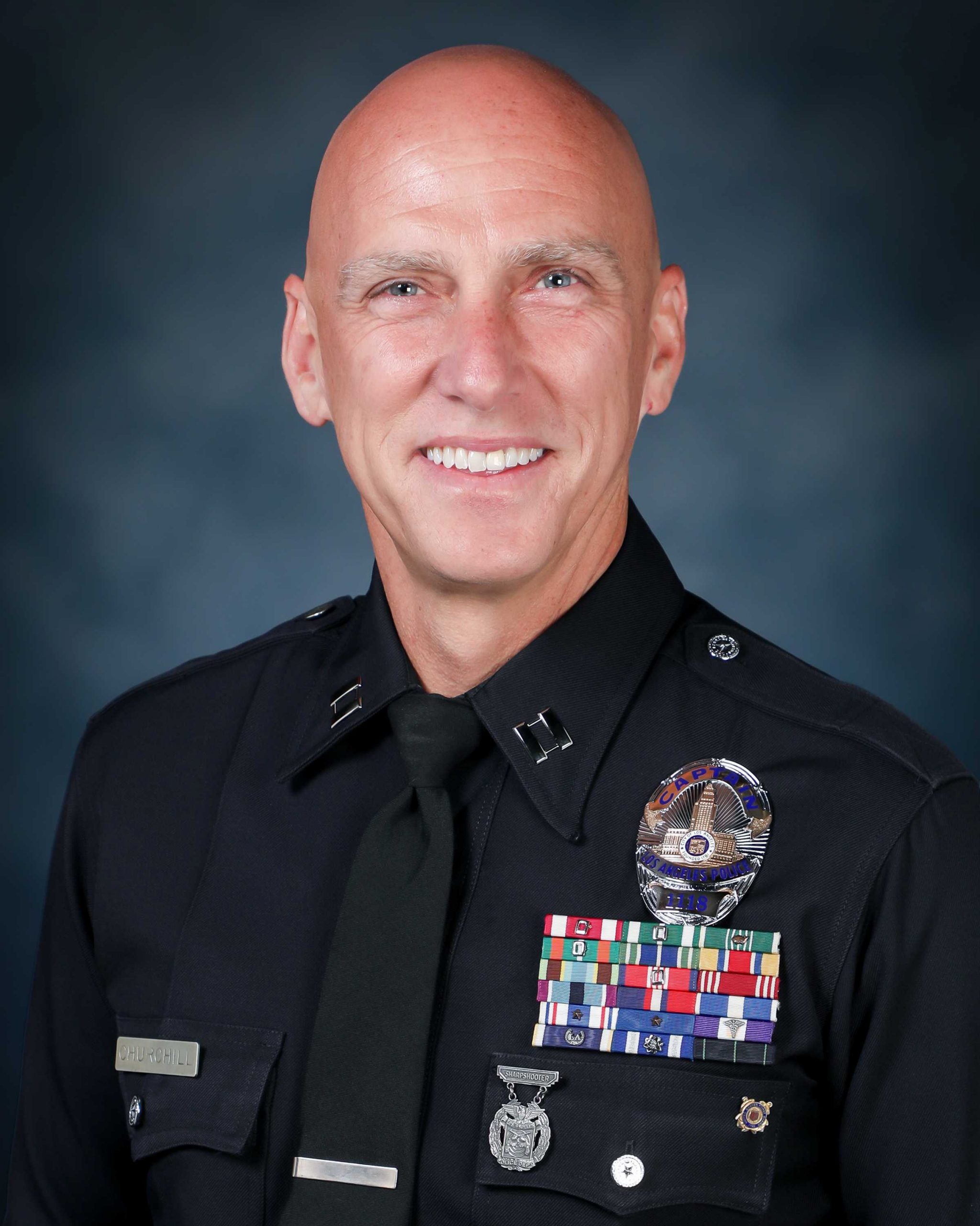 Captain Churchill holds a Master of Science from the University of London’s Centre for Financial and Management Studies and a Bachelor of Liberal Studies from Boston University. He is a graduate of the LAPD Leadership Program, Sherman Block Supervisory Leadership Institute, and POST Management School.