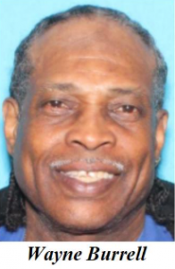 Mr. Burrell is described as a 64-year-old African American male with gray hair and brown eyes. He stands five feet nine inches tall and weighs approximately 180 pounds. He was last seen wearing a black and white shirt and blue jeans.